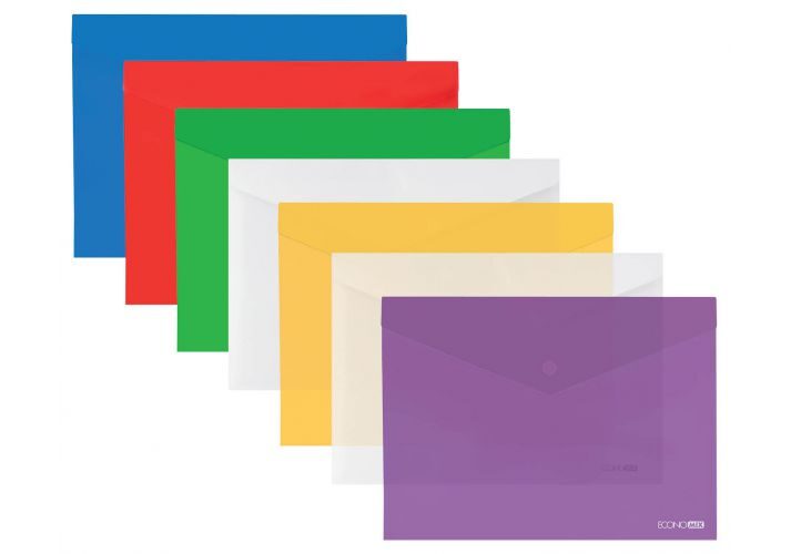 Конверт А4 пластиковый на кнопке ECONOMIX ассорти "глянец"