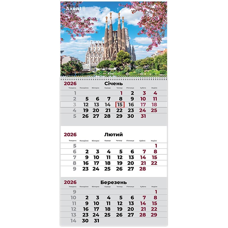 Главная Паперова продукція Календари 2026 Календар настінний квартальний., 1 пружини, AXENT Architecture 3