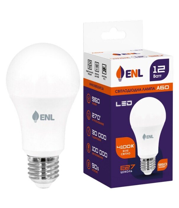 Обирайте ENL A60 12Вт 4100К E27 – потужне, якісне та економічне освітлення для будь-яких приміщень!